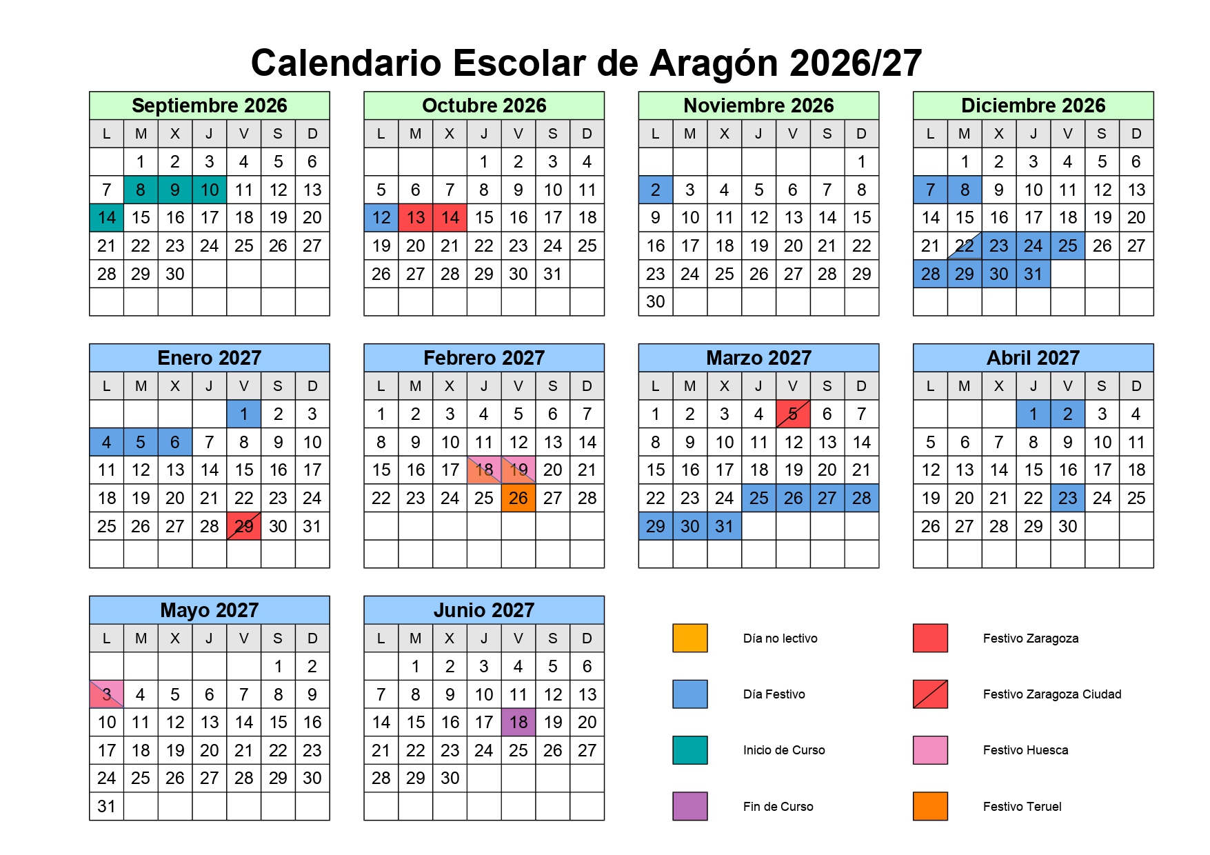 Calendario Escolar de Aragón 2026-27.