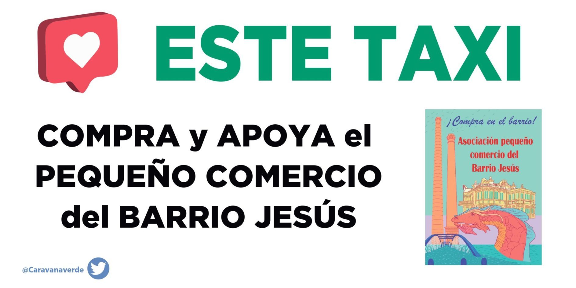 Campaña publicitaria altruista de la Caravana Verde con el Pequeño Comercio del Barrio Jesús.