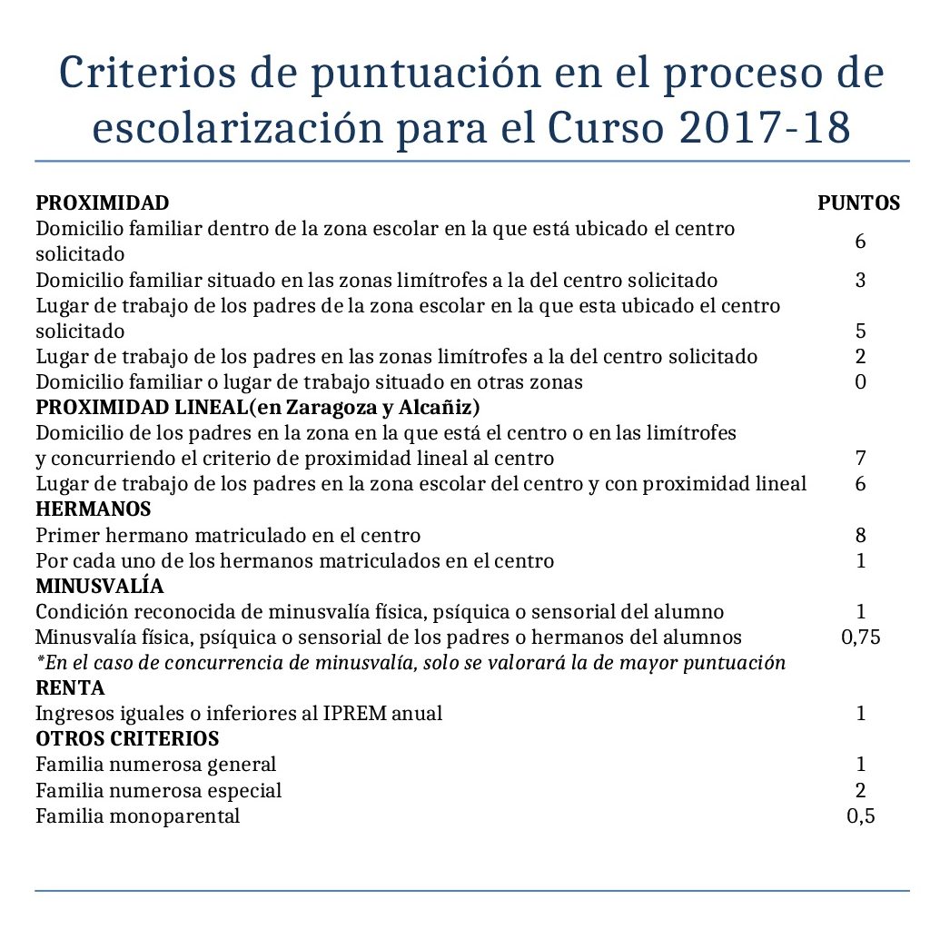 El periodo para la solicitud de escolarización 2018-19 de los niños se establece que durará desde el miércoles 18 de Abril hasta el siguiente miércoles, 25 de abril, ambos incluidos. Desde estas fechas, tanto las familias que quieran solicitar una nueva plaza, como aquellas que quieran un cambio de centro, podrán hacerlo en el colegio elegido como primera opción o en la sede electrónica del Gobierno de Aragón.