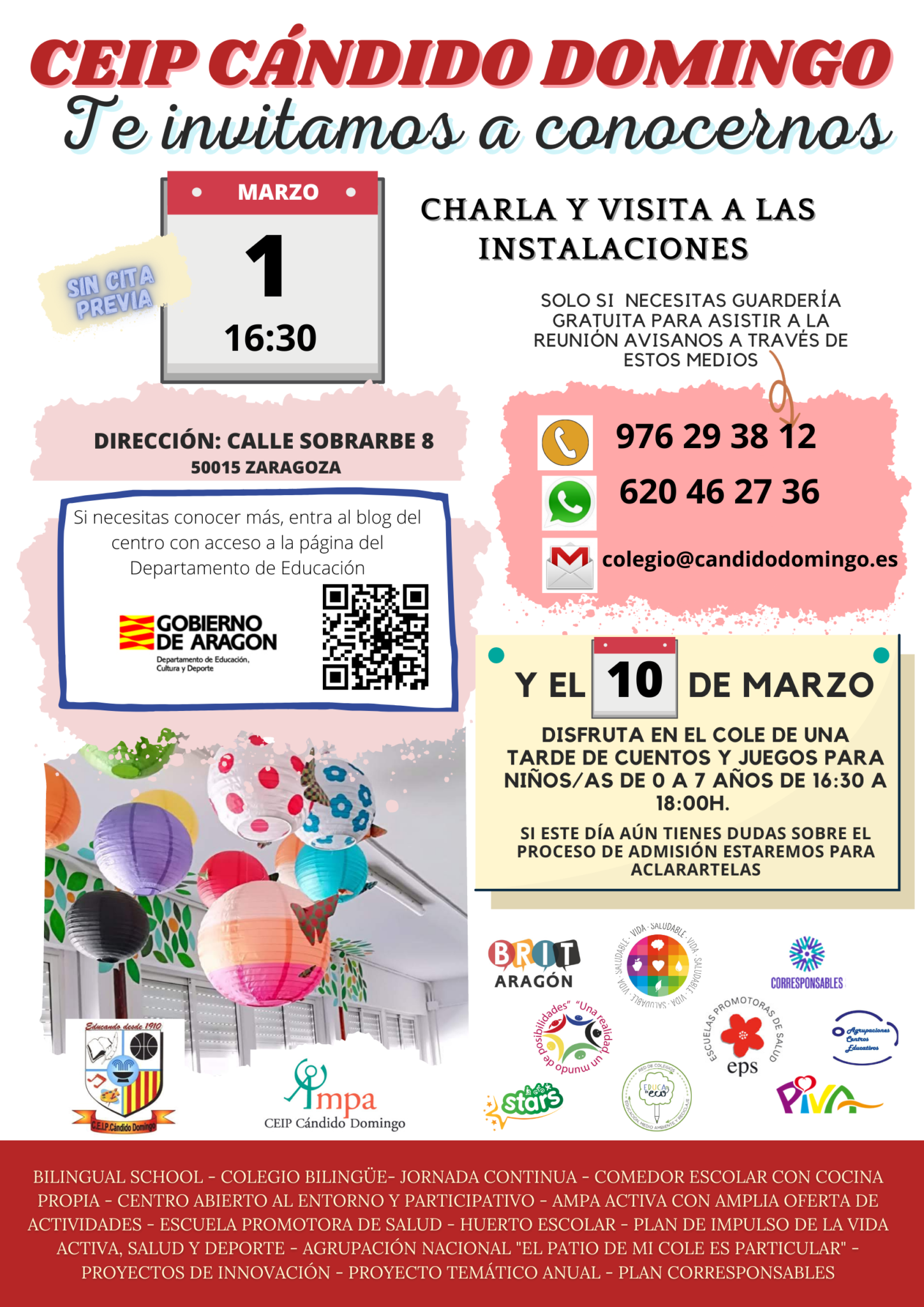 | CEIP Cándido Domingo | C/ Sobrarbe 8 | 976293812 | 1 de Marzo | 16:30 horas | — |