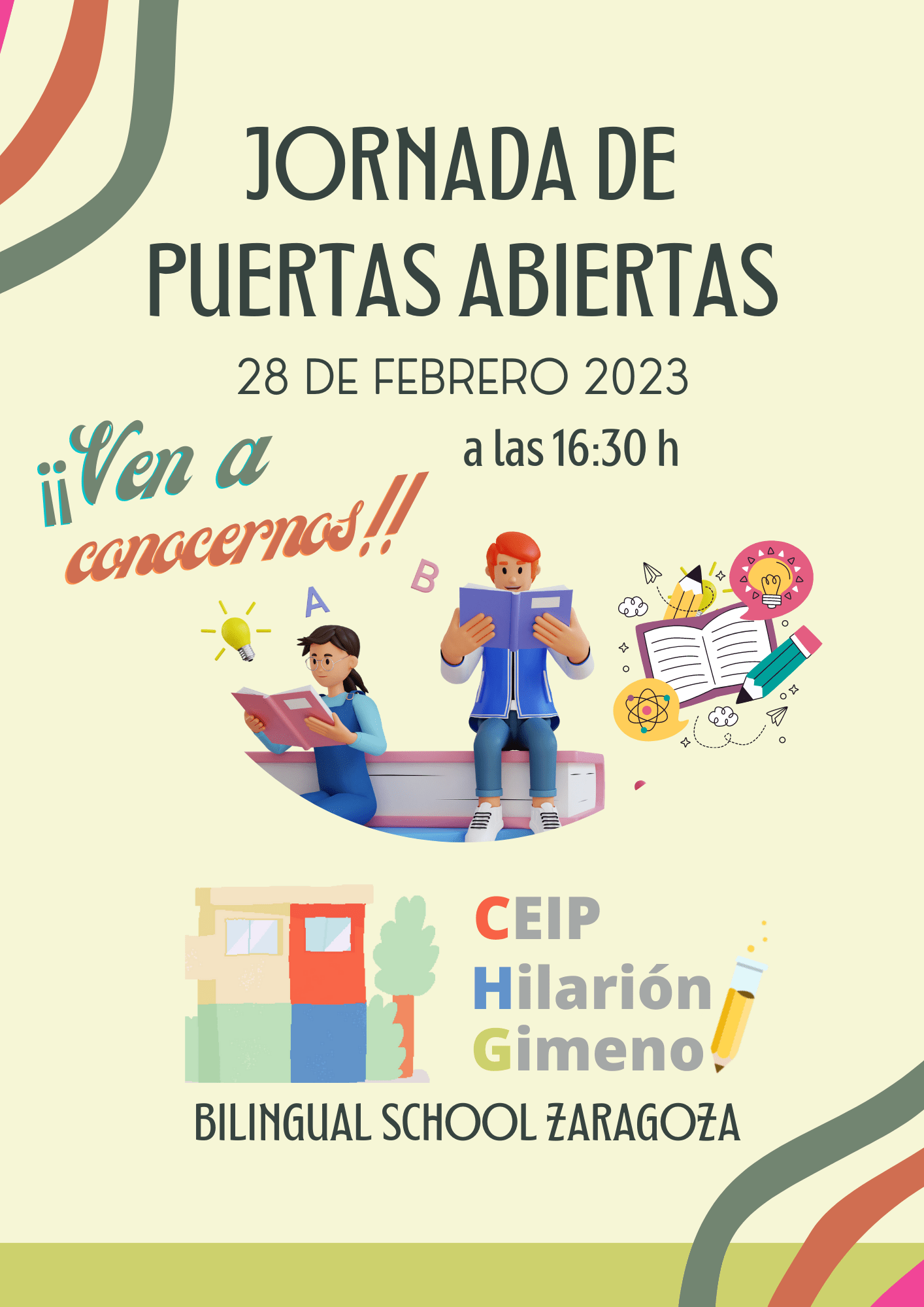| CEIP Hilarión Gimeno | C/ Arnal Cavero 1 | 976399138 | 28 de Marzo | 16:30 horas | — |