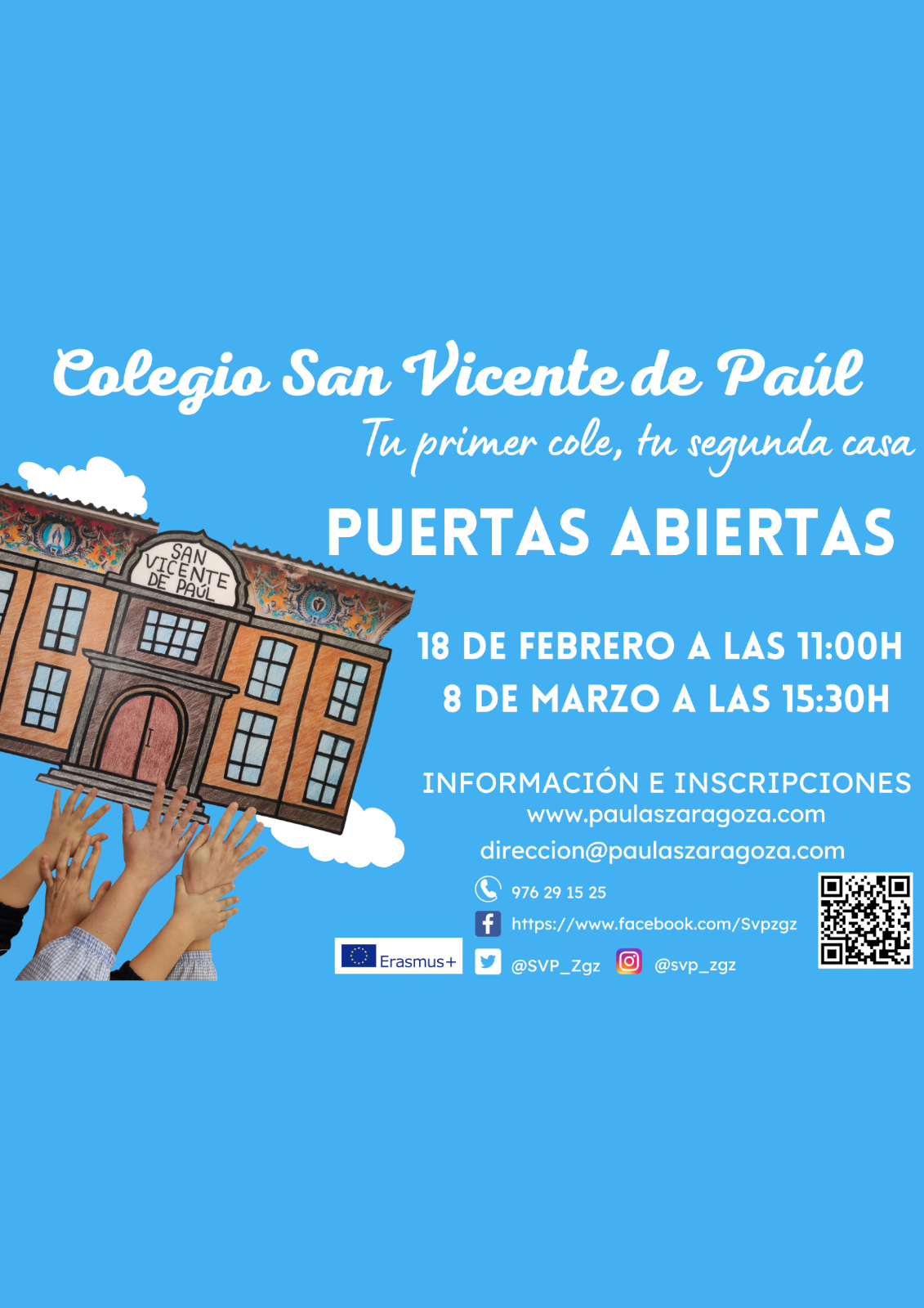 | CPEIP San Vicente de Paúl | C/ San Vicente de Paúl 31 | 976291525 | 18 de Febrero y 8 de Marzo | 11:00 y 15:30 horas respectivamente | Formulario de Inscripción |
