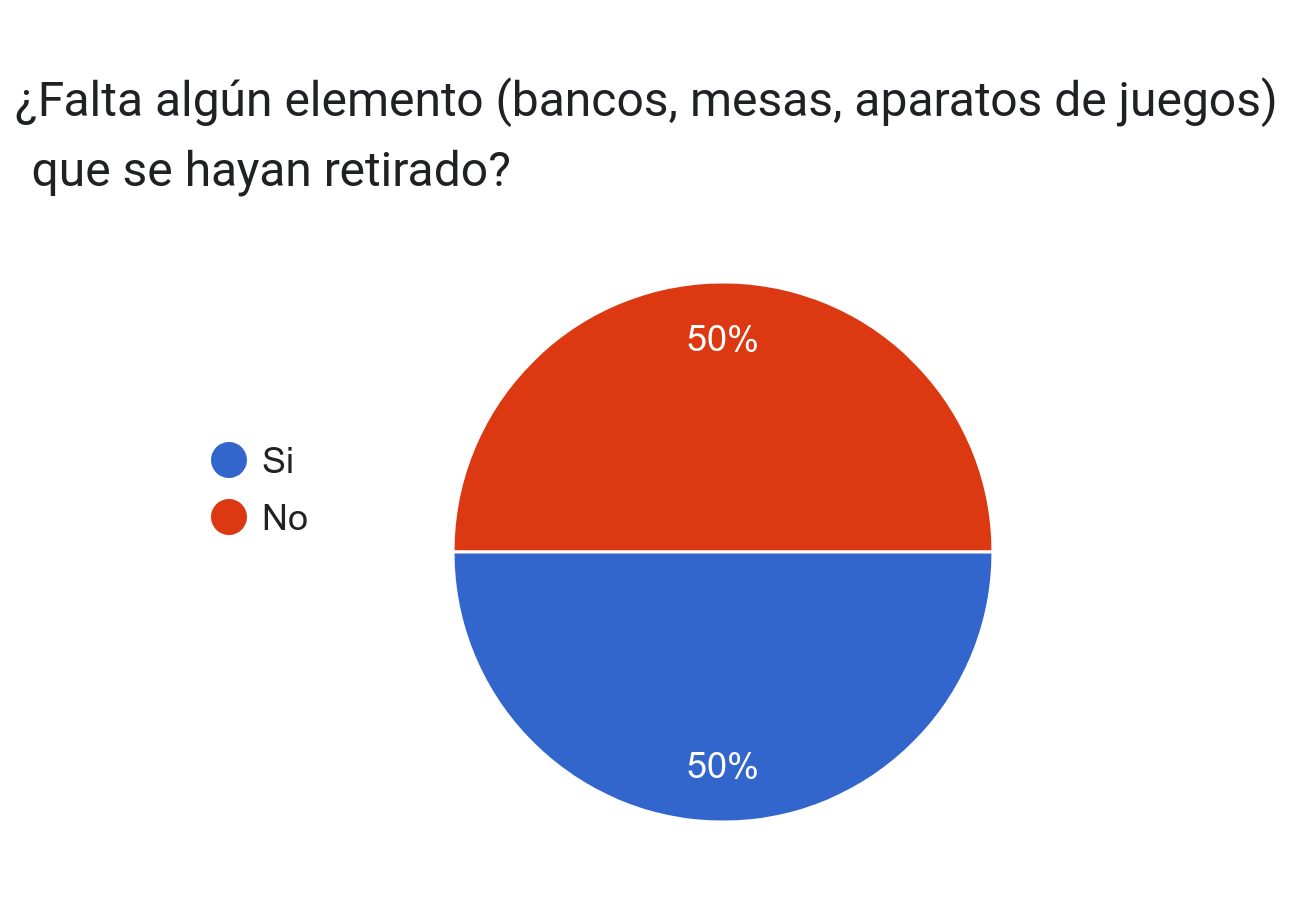 En general, por el resultado de la campaña de las encuestas recibidas, podemos decir que el estado de nuestras Zonas Verdes, Parques y Juegos Infantiles no es el más óptimo, existiendo deficiencias en todos ellos. La mayoría de las quejas hacen referencia a la limpieza, el vandalismo, la falta de elementos, el estado de los materiales o la falta de iluminación y de sombra en los equipamientos.